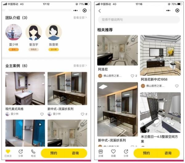 为了解决终端消费者选购浴室柜的需求,协助并支持门店共渡难关,阿洛尼浴室柜联合三维家,入驻逛逛美家平台,让消费者足不出户就可以在线云逛店,查看VR实景案例,还可以在线联系家居顾问预约免费设计;如果有任何产品相关的疑问,也可以快速咨询。