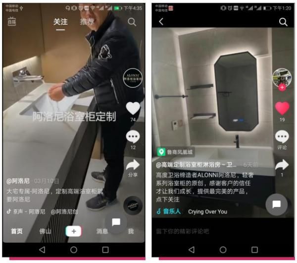 对于门店而言,见不到客户,如何推广产品,在疫情之下显得更为迫切。借助时下最火的抖音、快手等短视频平台,阿洛尼浴室柜全国门店主动出击,通过产品展示及讲解、日常VLOG、选购知识分享以及好物种草等形式,拍摄真实、有趣的短视频,持续输出原创内容,进行创意推广。