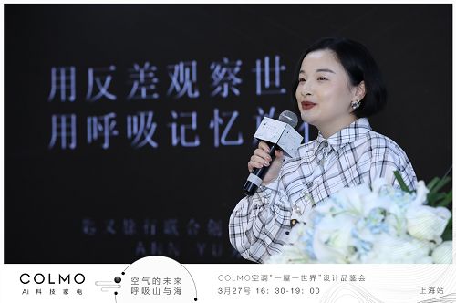 品鉴会现场, COLMO空调上海分中心总经理何方龙介绍了COLMO空调系列产品甫一亮相即惊艳行业内外的特点:通过深度学习及大数据分析,COLMO敢为人先,首创“微气候专家系统”概念,从“温、湿、风、净、鲜”五大维度实现对家中微气候的掌控,创造更高品质的空气环境,为用户提供更高端化的舒适体验。