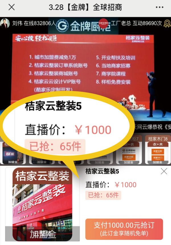 桔家云整装“三高”(高坪效、高单价、高成交)与“三低”(低成本、低进价、低风险)的核心优势,更是为投资者的“安心投,放心赚”提供了保障。众多投资者在直播间抢定整装,表达了对桔家云整装“三合一新整装”的极大支持。
