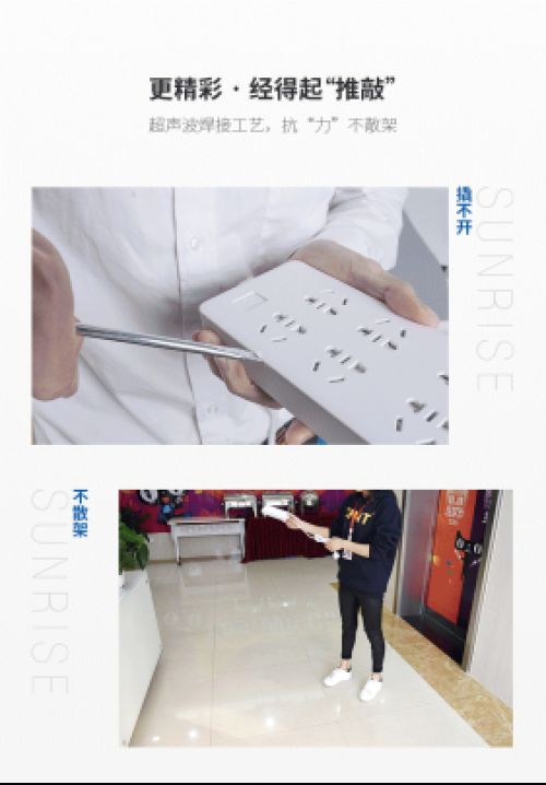 拿到排插后按下开关,开关弹性是否好,有没有卡顿,回弹是否顺畅,松紧程度如何,通断电情况是否正常。