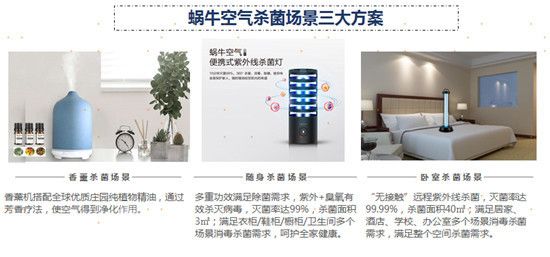 针对复工复学后日渐增长的除菌需求,海尔空气生态品牌蜗牛空气发布了香薰除菌、随身除菌和卧室除菌这3大除菌场景,为家居及公共场所带来了高效除菌消毒解决方案。