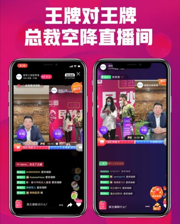 直播间两位BOSS级大咖王总、范总亮相全国居然之家天猫同城店直播间,以在线连麦的方式与直播间用户进行互动,让直播热度又上升了一个高度,这是一次史无前例的BOSS级约惠,居然之家总裁王宁王总与爱依瑞斯董事长范姗姗范总,两位BOSS级大咖的驾临,为本场直播间的全国范围内客户朋友们送上终极BOSS福利,此次直播更是范总的淘宝直播首秀,与直播间用户朋友们面对面砍价的大胆尝试,赢得了客户们的赞许,好评声刷爆弹幕。当晚王总与范总在线连麦,即刻点燃了在线用户的热情,直播间流量瞬间飙升,王总送出的BOSS级礼品福利更是让全直播间开启尖叫模式,这是属于爱粉们的福利狂欢夜。