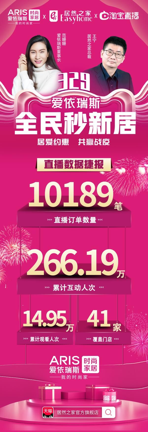 与居然之家的首次联合直播,爱依瑞斯凭借实力强势圈粉。【全民秒新居】联合直播是爱依瑞斯数字化营销模式上的又一次全新尝试,通过强强联合的方式,为品牌造势,向顾客朋友们送上优质产品与爆款福利的同时,实现口碑与用户的双丰收。