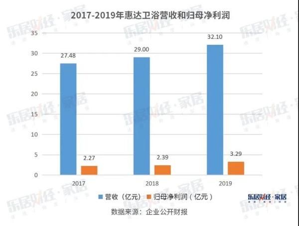 近日,国内卫浴龙头惠达卫浴发布2019年度年度报告:实现营业收入32.10亿元,较上年同期增长10.70%;实现归属于上市公司股东的净利润3.29亿元,较上年同期增长37.78%;归母扣非后净利润2.73亿元,同比增长31.06%;毛利率为33.03%,同比增加4.68个百分点。