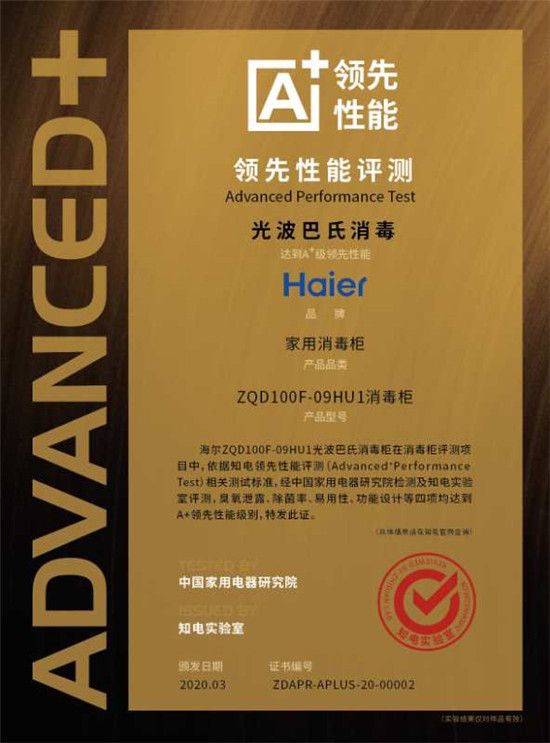 用户想要选购一台理想的消毒柜,不仅要考虑杀菌率,还要考虑臭氧泄露量,中国家用电器研究院给出的A+领先性能正好为用户带来更加客观的参考标准。