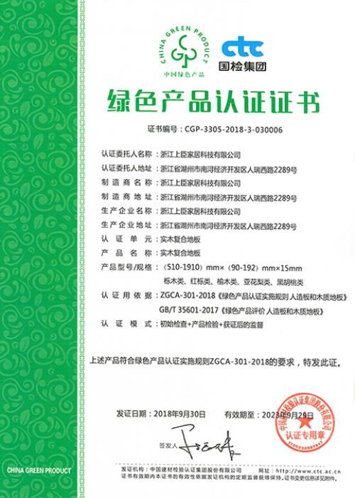 上臣实木复合地板精选优质原木基材,采用天然大豆胶和坚弗水性涂料智造而成,从源头确立环保品质优于国标,上臣企标E0级(甲醛释放量≤0.050mg/m³)几乎堪称“食品级”,同时,上臣实木复合地板荣获国家首批绿色产品,真正做到让顾客买的放心、用的称心。