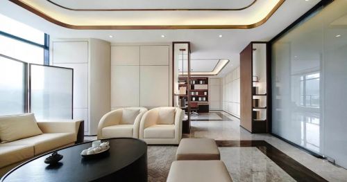 侨信集团办公室在设计之初就定下了“日常即道”的设计理念、整体空间和细节,皆以实用为核心,回归空间的本质,将室内空间分割成多个大区域,形成丰富的空间层次,并贯穿主客两条效率线,将各个区域串联起来,使每个空间相互交错,相对独立,在空间里合奏出一曲动人的歌。