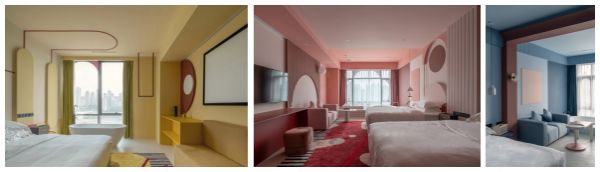 遵循三大构成原则,设计师用颜色和形状来做平面化的设计,强调去材质和多余元素,在弱化软装占比的同时,还原空间感和色彩本身的魅力,打造出一个如梦似幻的"彩色的极简空间"。