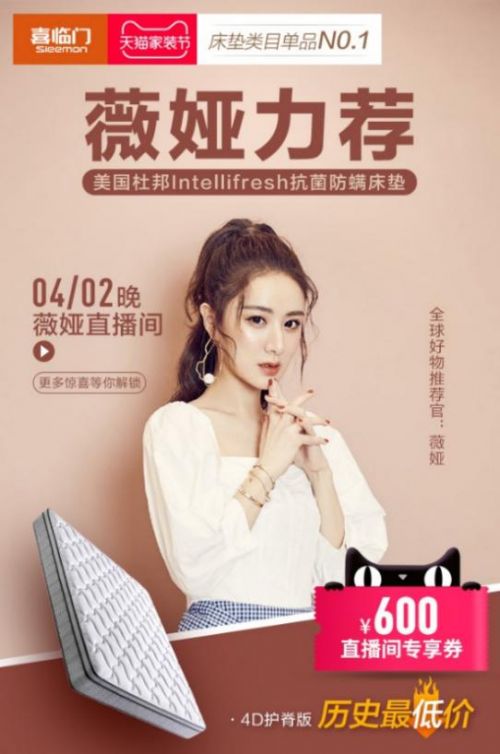 不仅如此,4月2日,喜临门抗菌除螨4D床垫还将亮相薇娅直播间!据说薇娅在对比各大品牌床垫之后,亲身体验了这款床垫快一个月才做的推荐。被选品超严格的淘宝一姐薇娅pick,这款床垫到底“凭什么”!