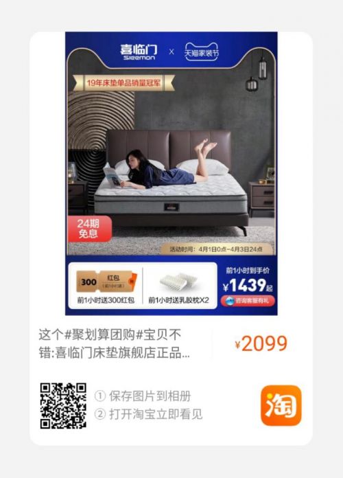 4月2日,在薇娅直播间购买喜临门抗菌除螨4D床垫,更有直播间专享服务,给你至尊VIP体验!
