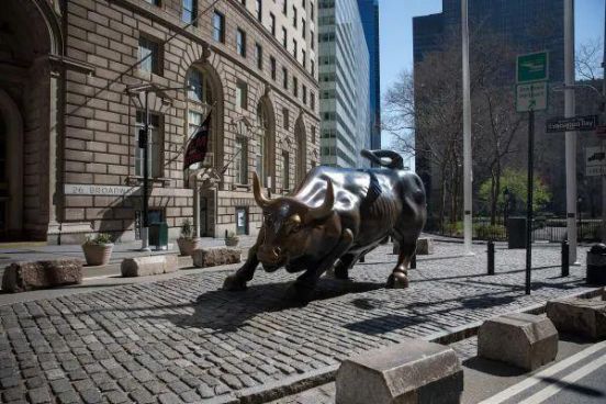 美国纽约曼哈顿的华尔街铜牛旁空无一人