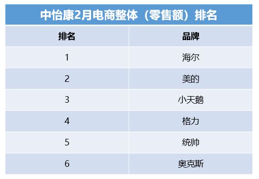 但疫情影响下的市场尚未恢复,家电品牌机遇与挑战并存。中怡康2月白电电商数据显示,行业增速同比下滑了28.84%。与此同时,Leader抓住机遇,逆势增长进入行业TOP5,比肩一线品牌。