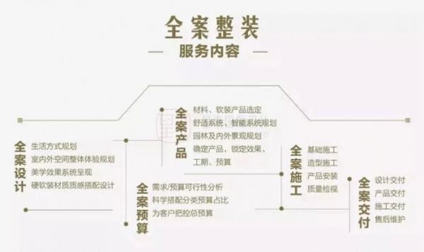 “全案”最重要的特征是“一站式”,从前期土建、它包含了土建、泥木、水电、油漆、选材、结构改造到后期软装配饰,包括设备、花园等,真正的“一次谈清、全面解决”。