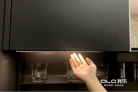 “我乐第十代智慧厨房”满足了你的想象。这个智能厨房包含了一个巨大亮点:独特的智能吊柜灯光设计。我乐设计师将照明与吊柜相结合,将用户的操作习惯融入照明开关方式之中,无需手部直接接触开关即可亮灯。我乐的吊柜灯光系统,可以通过开门和悬浮感应两种不同方式启动,让家庭日常下厨操作再无阴影死角。