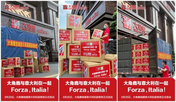 帮助意大利渡过难关,大角鹿在行动。随着疫情的扩散,意大利当地医疗物资供不应求,形势十分紧张。在如此危难时刻,大角鹿第一时间为意大利伙伴筹集了大量医疗物资。据悉,经过大角鹿全公司的紧急筹备,3月25日当天大角鹿驰援意大利抗疫的大批物资,承载着大角鹿全体员工对意大利的祝福已经正式装车发往意大利。