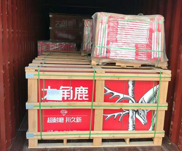 (大角鹿出口到俄罗斯的超耐磨大理石瓷砖加急装柜发货)