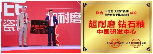 此外,大角鹿还联合意大利卡罗比亚釉料公司成立了“超耐磨钻石釉中国研发中心”。超耐磨钻石釉中国研发中心的建立,不仅有利于大角鹿超耐磨大理石瓷砖品质的不断突破革新,更推进了大角鹿与意大利卡罗比亚公司的合作共赢。
