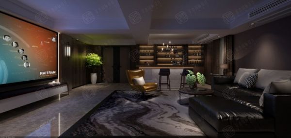 负一楼也设置了酒柜和吧台,唐先生的父亲和岳父都酷爱品酒,他们时常在这里喝上一杯,有时女儿和太太也会在吧台DIY一些饮品,通过这些生活中的细节事,把一家人联系得更紧密。