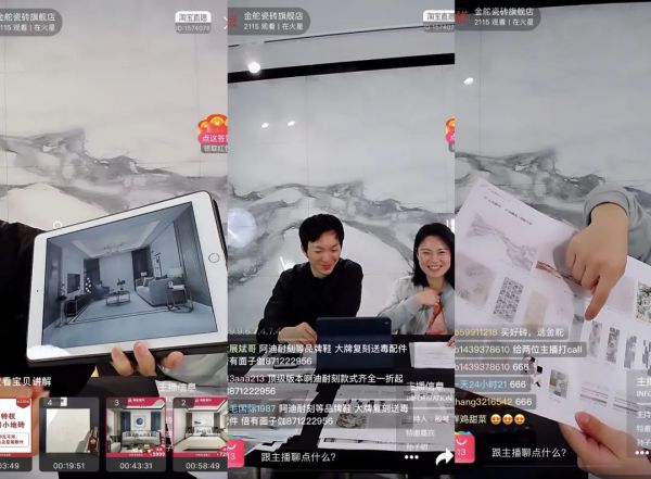 金舵瓷砖采用“卖货+品牌展示+场景体验+流量入口+内容”新的营销模式,内容天天不重样,直播中融入了产品研发大咖、设计大神、各大区域的总监和专业导购等人对瓷砖全方位讲解,还有“云”逛展厅、看门店和挑选产品等,为消费提供家居装修解决方案。