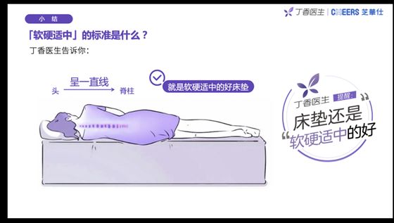 对此,丁香医生建议“床垫还是软硬适中的好”。软硬适中的床垫不仅可以支撑身体带来的重量,还可以保护睡眠中的脊椎处于自然曲度,从而营造一个良好的睡眠状态,安心呵护睡眠。