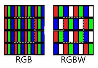 除了看说明书外,还有一个很简单的方法可以自行检测真假4K屏幕,因为4K电视是采用RGB模式,所以只要打开手机摄像头贴近电视屏幕拍照,放大照片后我们可以看到红绿蓝(RGB)三个颜色依次排列,这就是真4K屏幕,如果发现除了红绿蓝三色外还多了白色(W),那么你很有可能买了假的4K电视。