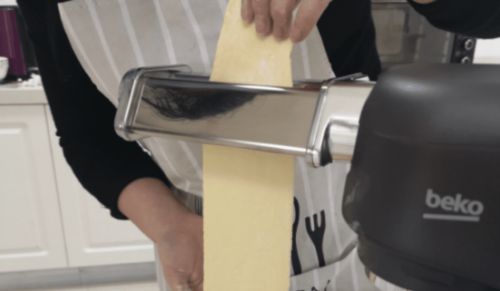 醒好的面团放入倍科厨师机的压面配件,就成了一张厚薄均匀的面片,你只需要找到合适大小的模具,就能轻松做出一张张完美的饺子皮。而多余的边角料揉揉之后还能继续压成面片,一点也不会浪费。