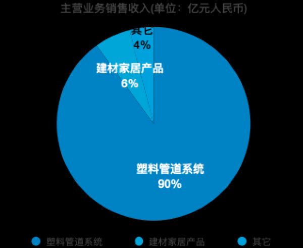 其中,塑料管道系统业务销售收入按产品应用划分来看,用于供水、排水、电力供应及通讯、燃气输送的销售收入分别为92亿、90亿、41亿、4亿元。