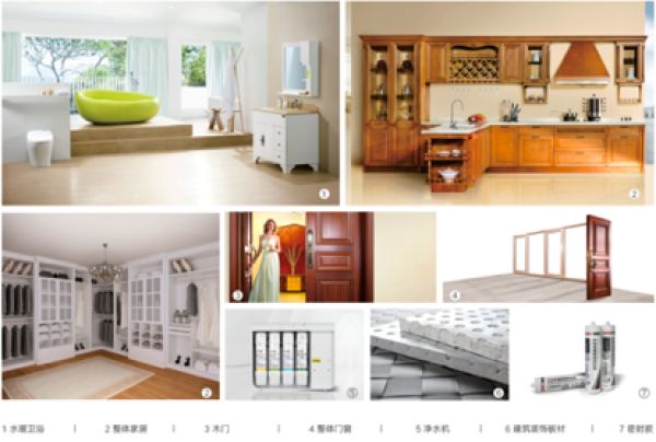 塑料管道业务之外,还涉及了水暖卫浴、整体厨房、整体衣柜、整体门窗、净水机等。同时还有一些民用的建材产品,家居零售市场也能经常见到,比如防水涂料、阀门、密封胶、装饰板材、石英石等。