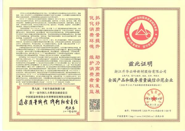 质量、服务和诚信从来都是升华云峰作为社会责任型企业的立足之本,是面向消费者和市场的重要载体,是领跑绿色健康大家居生活的核心基因,更是云峰企业文化核心价值的集中体现。从企业成立之初,莫干山就凭借绿色生产、真诚服务、诚信经营的企业品格,在不断精进和创新的基础上,始终将产品质量视为企业发展战略的基石,严格把控产品质量,全力打造产品质量管理和安全防护体系,为广大消费者提供高品质的绿色健康产品。未来,莫干山将以此荣誉作为勉励和鞭策,进一步保证产品品质,改善服务质量,大力开展创新研发,认真履行社会责任,诚信经营,规范发展,与社会各界携手共创中国质量强国梦!