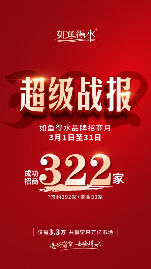 自3月1号开始,从各大省及直辖市市场到各个地级城市,从各个县级市场到众多三四级市场,国内窗帘行业刮起了一股火热加盟风潮,这就是如鱼得水在全国范围内开启的「品牌招商月」活动。