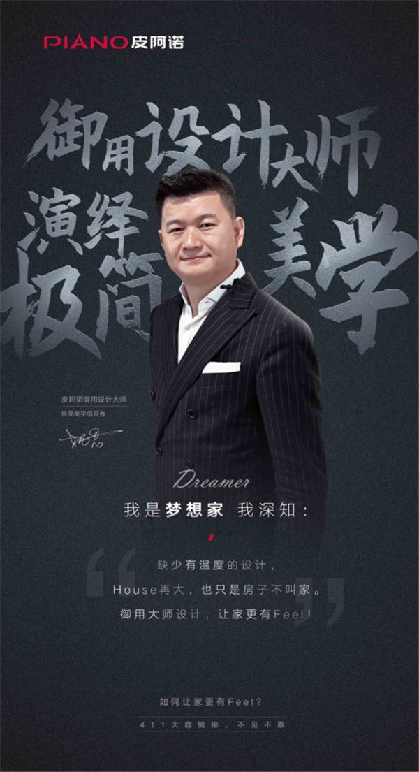 皮阿诺御用设计大师、极简美学倡导者姚君老师,也将出席直播活动,为消费者设计有温度的家。姚君老师在家居设计领域有着无可撼动的地位,他的作品一次又又一次走出国门,在汇聚全球设计潮流的米兰展展示国之魂的家居作品,在他的家居设计作品中,既有中国纯粹的线条美,也有现代极简的的布局美。他的美学理念在空间的每一个点、线、面,甚至颜色演绎得淋漓极致,打造用户身心合一的居所空间。