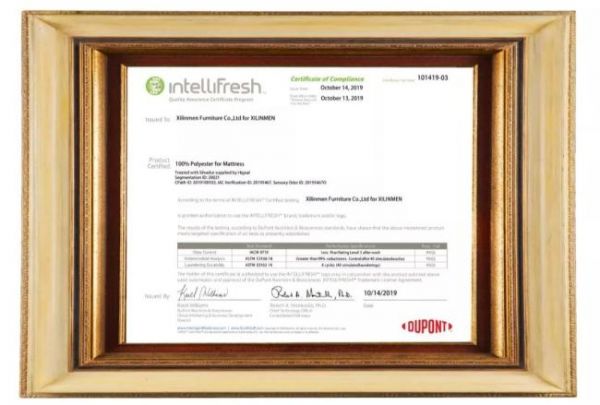 其中,美国杜邦Intellifresh技术的抗菌率高达99.9999% ,高于国家标准100倍,可以祛除环境(霉味、烟味)和体味(汗味、狐臭、脚臭、童尿等)造成的异味。即使经40次反复洗涤,抗菌率仍能保持99.9%以上,抗菌更持久,面料不黄变,让床垫使用多年后,历久弥新。大大增加了产品在保卫家人健康,捍卫免疫力方面的核心竞争力。