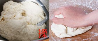 ②和面钩重心点与受力支撑点垂直反复揉搓,给面团足够压力。