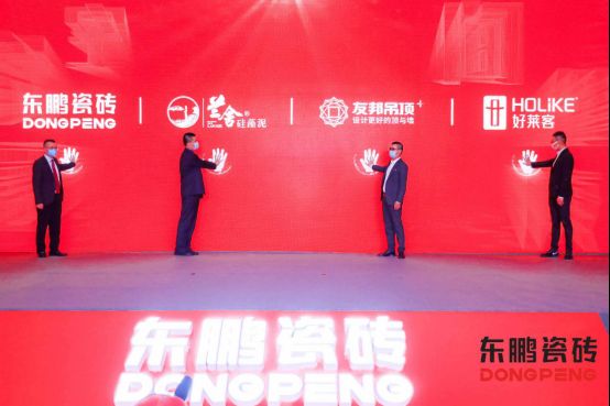 中国建材工业经济研究会副会长、广东省建材行业协会常务副会长、广东陶瓷协会会长陈环,中国室内装饰协会副会长、广东省装饰行业协会常务副会长陈书全,佛山市陶瓷协会秘书长尹虹,清华大学高端装备研究院教授邹红星等专家共同见证。广东东鹏控股股份有限公司董事长何新明,广东东鹏控股股份有限公司总裁龚志云,东鹏瓷砖事业部总裁吴文新,兰舍硅藻泥总经理柴玉石,友邦吊顶总经理韩耘,好莱客全屋定制营销总经理库腾等嘉宾,以及权威媒体代表出席了活动。