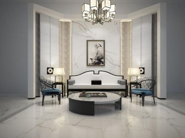 在现代家居装修中,采用大板瓷砖已经成为流行趋势,配上简约大器的主灯