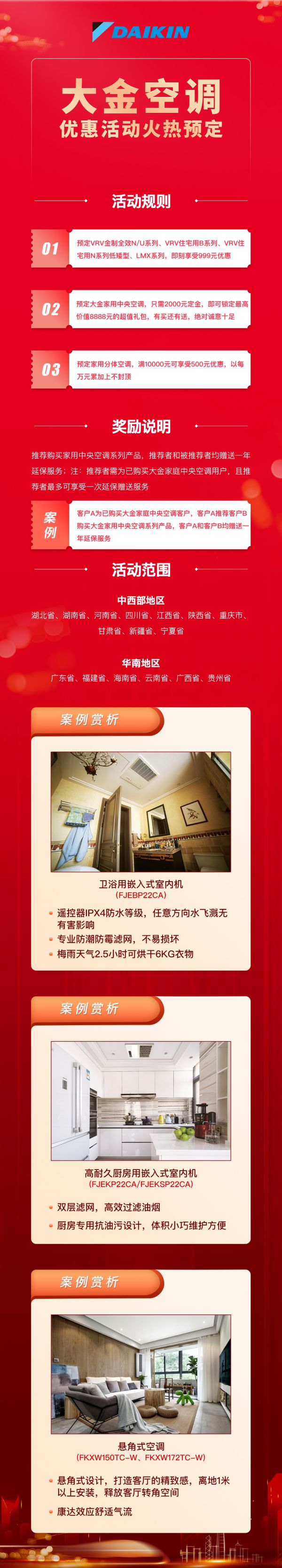 ②预定大金家用中央空调,只需2000元定金,即可锁定最高价值8888元的超值礼包,有买还有送,绝对诚意十足。