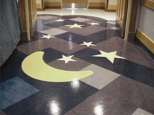 1、首先我们要先把卷材地板平整的铺在地面上,超出八米的铺设间隔必须要把地板分为前后两段进行铺贴。