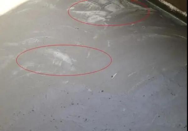 防水层泛白,一般指灰色、或者是彩色的防水层,干固后出现表面发白的情况,一般和水分太多有关。