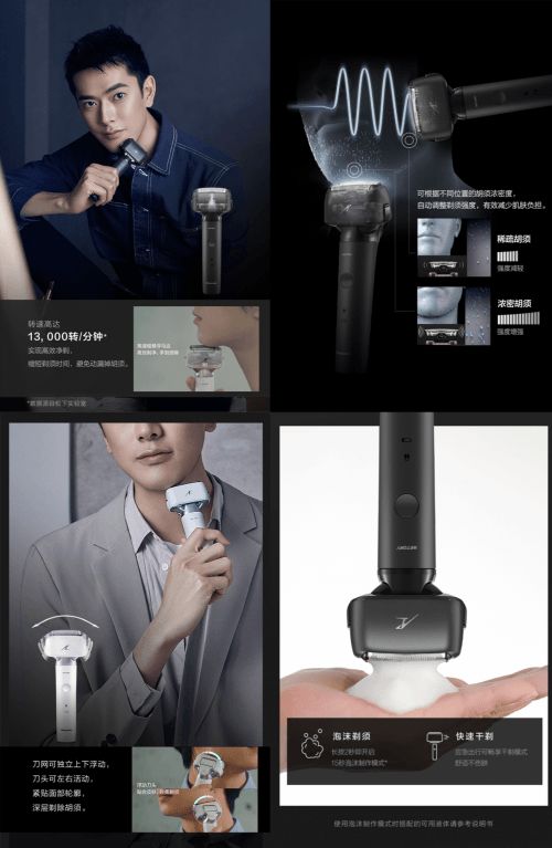 - 立体浮动刀头,紧贴面部轮廓,可自动灵活调整剃须角度,深层净剃同时不易刮伤肌肤;