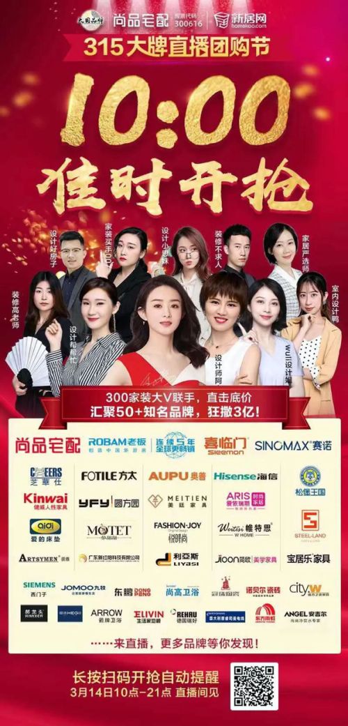 315尚品宅配联合300个家装大V与50多家家居品牌开展直播团购会
