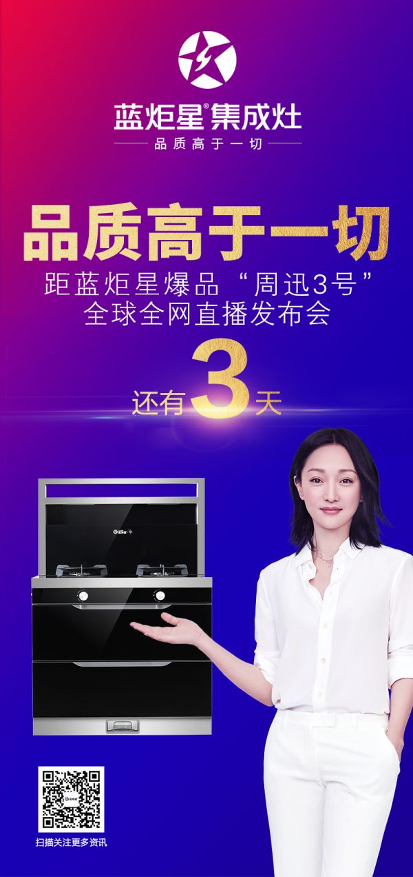 倒计时3天 ,周迅代言的蓝炬星集成灶即将直播发布爆品!