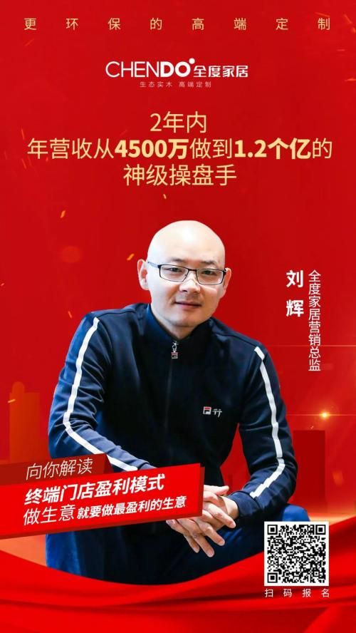 (人物介绍:刘辉--2019年中国家居行业百强职业经理人,定制家居业内神话级职业经理人,原索菲亚操盘手,用2年时间将省会级城市从年营收4500万做到1.2亿,创造了定制家居行业的神话。)