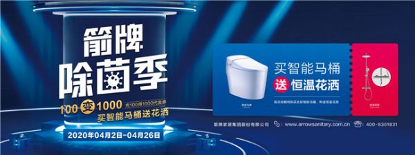 2020年04月02日-04月26日箭牌除菌季,箭牌卫浴推出多项优惠与服务政策,活动期间:可为老客户提供免费上门除菌服务,凭箭牌VIP特权卡即可免费获得上门浴室除菌清洁服务,更有充100得1000代金券,买箭牌智能马桶V6绚AKB1305送恒温花洒等福利大放送!更多优惠活动可咨询全国箭牌卫浴门店。