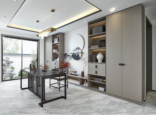 入则隐,出则仕,从入户玄关开始,柏厨让每一个空间藏有玄机。客厅的置物架一如博古架般,方寸收纳间,体现主人的收藏品味。厨房里的东方味道,仿如玉兰叶树脂板,在云里若隐,于山涧若现。让禅味入书房,让禅意留心间,从茶室书房到榻榻米的设计,柏厨把淡雅之气装进有形的空间中,让你可以在功夫茶的沁人心脾里平复内心,在精心准备的藏书中寻找灵感,用笔墨纸砚发现丹青的空灵,在一茶一坐间让自己的生命变得更有厚度。