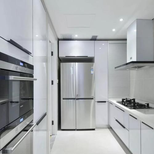 由于范围小,所以我们在布局时要做到物尽其用。例如家电,可以建议使用嵌入式的家电这样可以节省厨房空间的同时,又能让环境看起来更整洁。比方说把油烟机藏在橱柜中,把洗碗机、烤箱都嵌入橱柜中,使用时直接掀开,方便又美观。