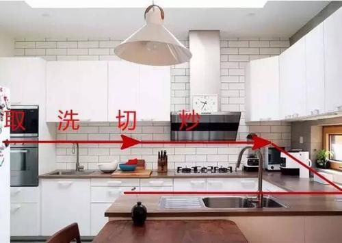 众所周知,煮一顿饭需要经过的步骤有很多,如取、洗、切、炒、装等,因此操作台风设计一定要根据操作人的行为动线来设计,按序分布好,这样才能保证在小厨房里进行高效操作的同时,又不会因为动线凌乱影响操作。