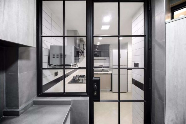 同时,尽量选择玻璃材质,展示效果强的同时,还能更有通透感,压抑感也会随之减弱。一般可以运用在厨房与外部空间的隔断上。例如设计一个玻璃推拉门,既不会影响空间视觉效果,又能很好的阻隔油烟。