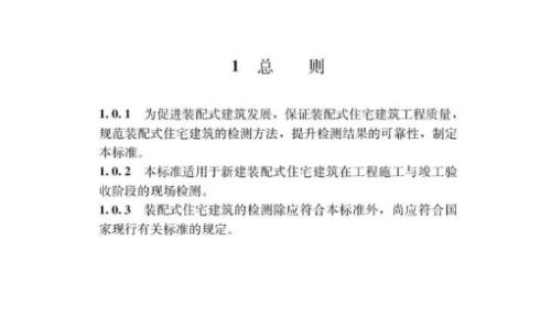 该标准适用于新建装配式住宅建筑在工程施工与竣工验收阶段的现场检测。标准明确:工程施工阶段,应对装配式住宅建筑的部品部件及连接等进行现场检测;检测工作应结合施工组织设计分阶段进行,正式施工开始至首层装配式结构施工结束宜作为检测工作的第一阶段,对各阶段检测发现的问题应及时整改。