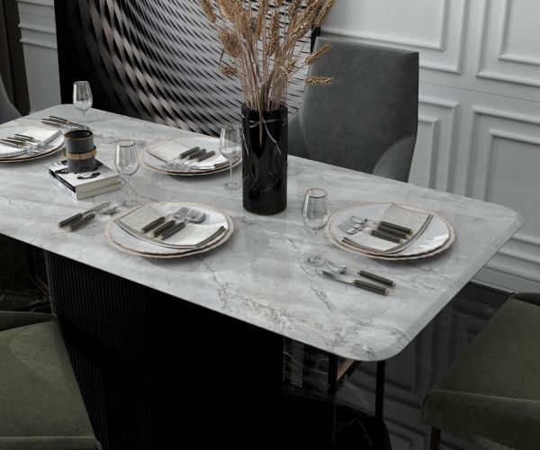 而这个时候,新的问题又来了。新生代装修用户,接触到更多国际流行空间设计趋势,他们对于空间格局的个性化塑造,也不再是传统豪宅装修的范式样板。这种需求往往需要对饰面材料进行更刁钻角度的切割,再加工以实现更大胆的空间造型。传统只仿表面的大理石纹理瓷砖在遇到倒角、开槽、侧面裸露等应用场景后,就更加相形见绌。